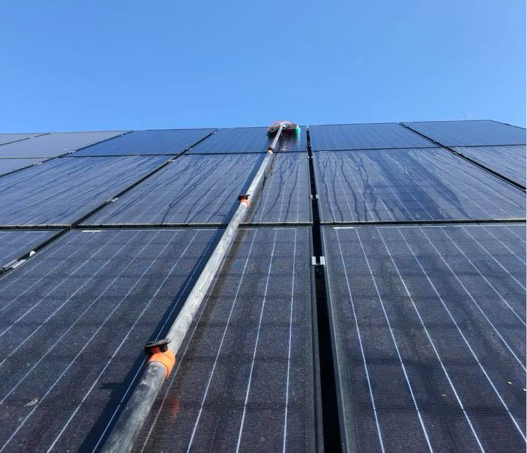 Naast ramen neemt Ruitenwasserij Bruyninckx ook zonnepanelen, dakgoten en veranda’s onder handen. Zonnepanelen reinigen wij met gespecialiseerde borstels, zonder gebruik te maken van schadelijke producten.